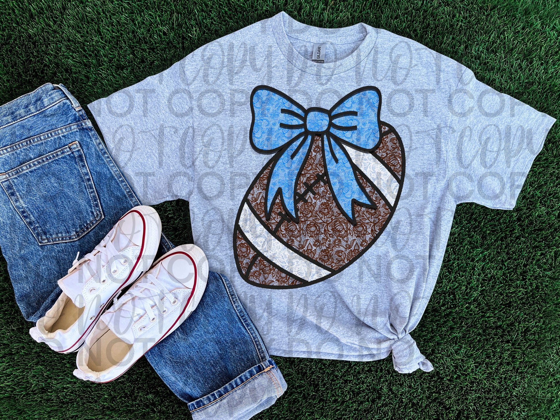 Football w/ blue bow floral lace
