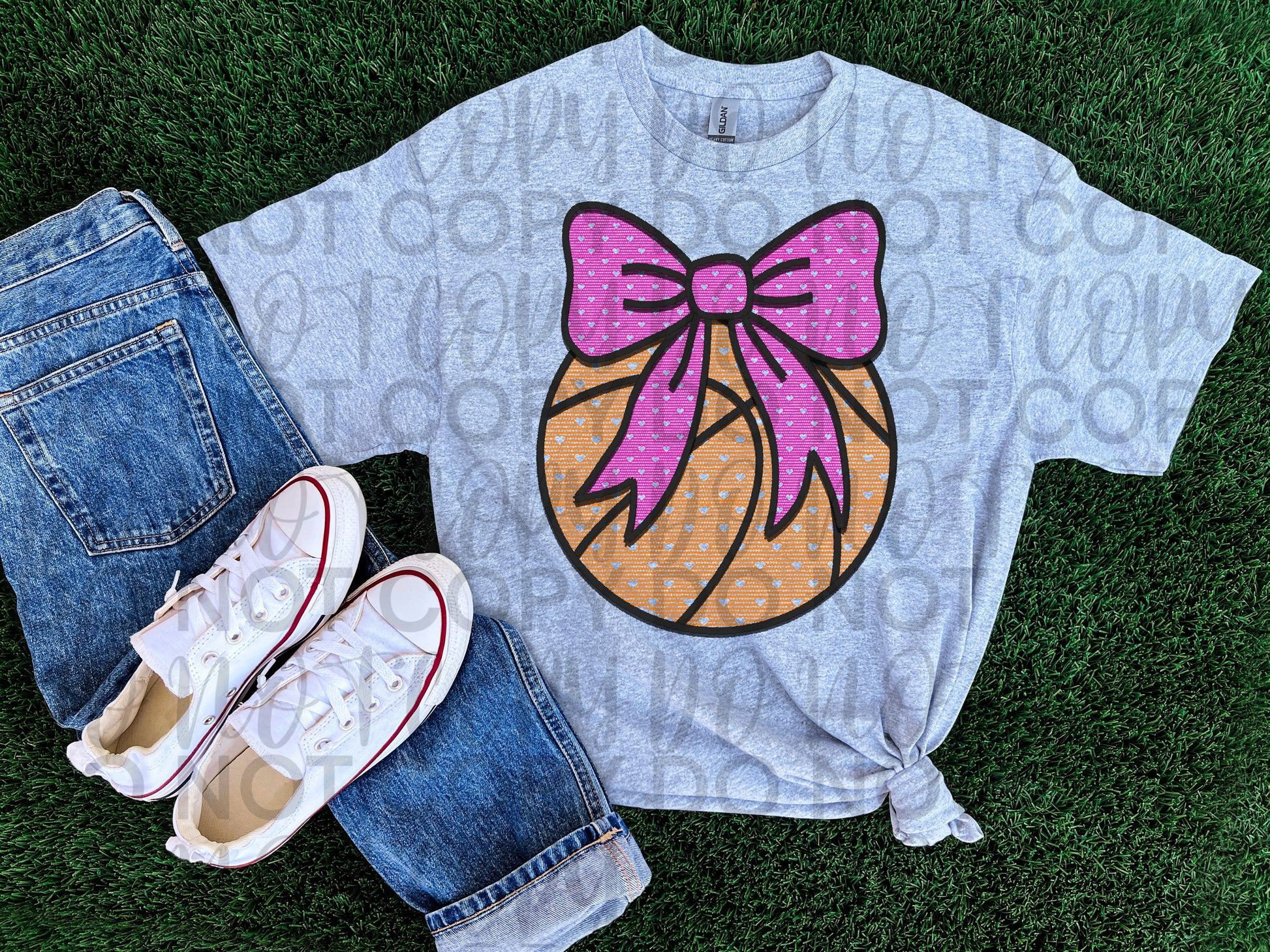 Lace heart basketball w/ pink bow